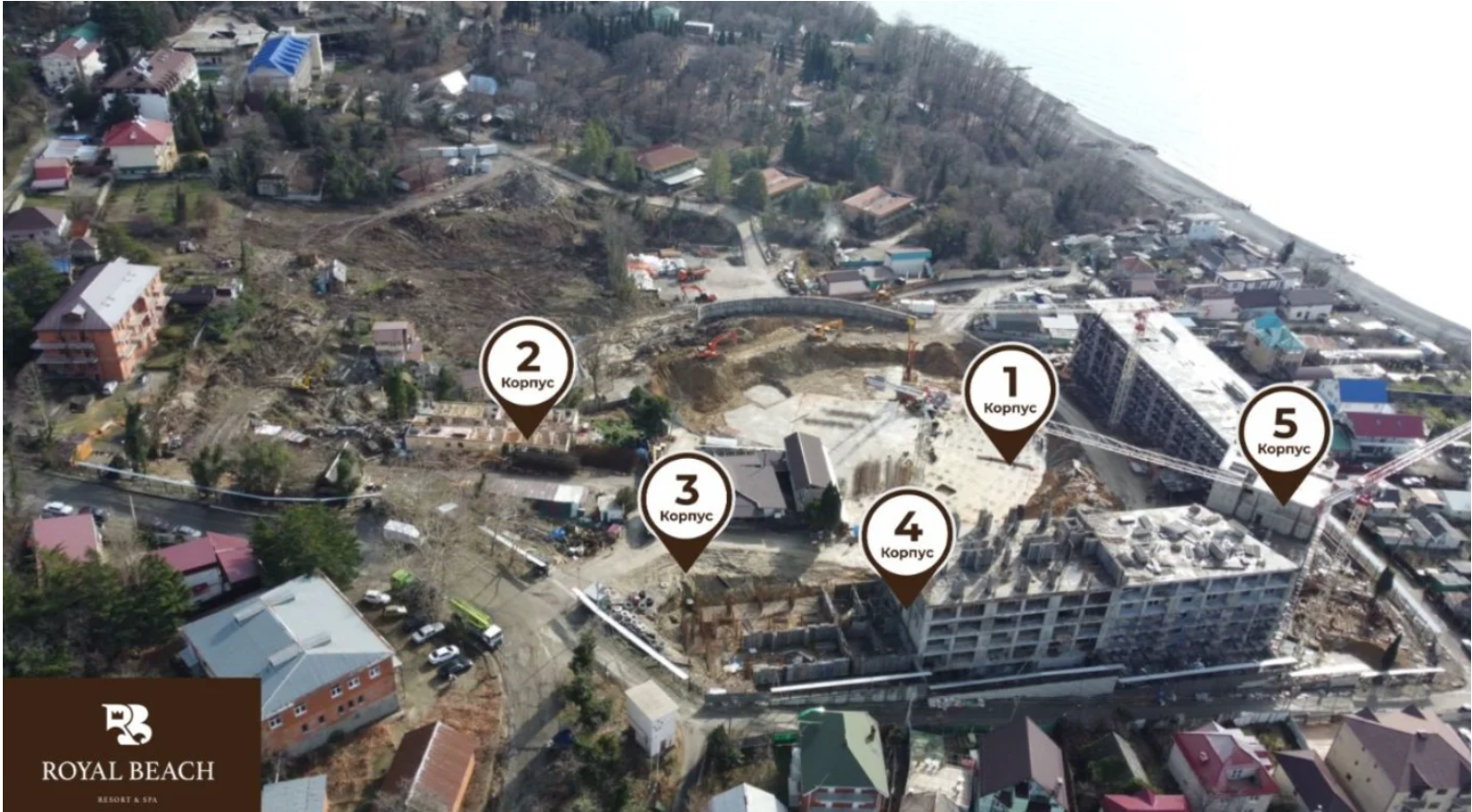 В апреле 2025 года на 10 га территории курортного кластера в Аше продолжаются работы по возведению корпусов Royal Beach Resort & Spa.